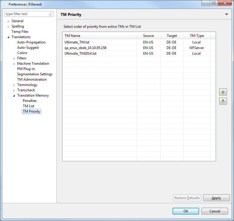 Note: Generic users with only Read privilege cannot select the Read-Only checkbox in the TM List to write to a remote TM. Generic Users with Read and Write privileges can select the Read-Only checkbox in the TM List, and enable read/write privileges to the remote TM.